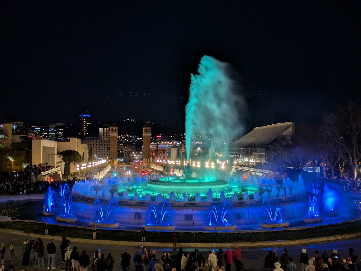 Večer doporučujeme známé Magic Fountain of Montjuïc. Světla, hudba a vodní show vytvořily krásný úvod do víkendu. Pro děti to byl okamžitě velký zážitek – kombinace barev, hudby a večerní atmosféry města funguje jednoduše vždy.